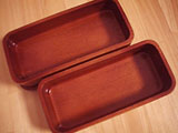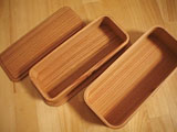 毎日おやつを持っていくようになり1年近くになりました。代わりにお弁当の量を減らすようにしたので、お弁当箱が大きすぎて、おかずがかたよってしまう。。。ひとまわり小さいのを探していたとき、木の大好きなpenchanが、お弁当箱も木にしよう、と言い出しました。木のお弁当箱は、横にすると汁がもれてしまうけど、去年1年で、かばんを横にしないことに慣れたようなので、やってみることにしました。