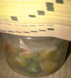 - ビニールに青梅を入れ、霧吹きで焼酎をかけます。