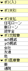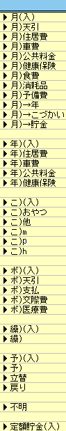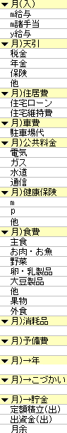 最初の2年くらいは、費目の試行錯誤の連続でした。紙ほどゆうずうがきかないので、ちょっと大変でした。でも、計算はコンピューターが瞬時にしてくれるので、自分は、データの入力をするだけですみ、余力を、より細かいデータの入力・家計の分析・改善にまわすことができたのは大収穫でした。 |