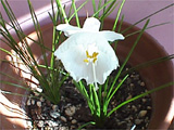 penchanと水仙、 引越し前の97年1月くらい、世田谷の、近所のお庭に真っ白な水仙が咲いていて、 とってもびっくりしました。かわい〜な〜って。 |