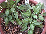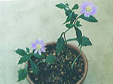 1997/5/31 本によると日陰がいいとか、いや日向じゃないと花色が薄くなるとか、諸説ありました。が、確かに花色が薄いので、日向においてみました。でもカタログとかで見る濃い色のみやこ忘れより、うすい色のほうが風流だな〜。 |