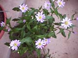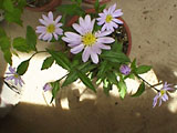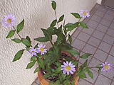 玄関の外へもっていってみました。今年は株が大きくなって、たくさん花をつけてくれてうれしいです。みやこわすれでこの色がとっても好きになりました。 |