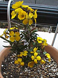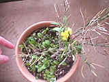 いったんお花が終わって、枯れている部分すべてに種ができていたのですが、新しい枝が出て、花が咲き始めました。下は、種をまいておいたのが、たくさん芽を出しているところです。 |