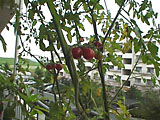 | 種から育てた98年は大豊作です。種から育てた12株、プランター2つで、ぜんぶで130こくらいも収穫できました。 完熟してからとるトマトって、こんなに甘くておいしいのね。 |