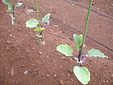 2こ収穫しました。まだちらほら花が咲いています。花が咲いていない枝は切り戻そうと思います。おいしい秋なすも食べたいから。 |