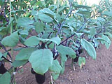 畑に6株くらい植えました。81こ収穫、大豊作です。1株がこんなに大きくなるとは、ベランダでつくっていたときは想像もしてませんでした。 とても新鮮でつやがよく、おいしかったです。焼きナスにして小さめにカットして、冷たいお味噌汁の具にするなんて贅沢もしました。大好きななすも買うとこんなには食べられないので、幸せでした。 |