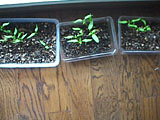室内で、まいた種から芽が出てます。 トウガラシの苗をなかなか見かけないような気がして、昨秋のサカタの種の注文のとき、頼んでおいたものです。 |