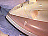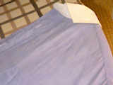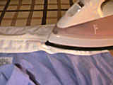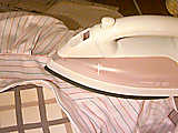(アイロンのりなどを吹き付けます(penchanは「アイロン用スムーサー」がお気に入りでした。すべりがよく、しわもすぐとれるので、1枚1、2分くらいの短縮になります)。→→→97年夏以降は、スチームをきちんと使うようになりました。しわをつけてしまった時だけスチームをオン、折り目をつけるところではスチームをオフ、スイッチひとつできりかえです。水をいれて、あまったのを最後にすてる手間くらいはかかっても、このほうが安いし、肌にもやさしいですね〜)。
