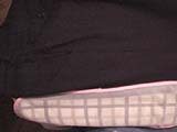 1. 足首側を右側におき、片足づつ、足首側の左右の縫い代と縫い代をあわせ、アイロンをかけます(左右下)。