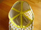 つばの芯部分は、キルティング用の綿での代用だとフカフカしていまいちなので、いちばん厚手の接着芯を2枚はってみました。まだやわらかいけれど。