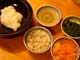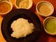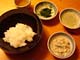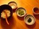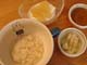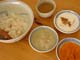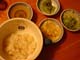 7:30、お粥、じゃがいものあらつぶし+にんじん、さわら、春菊、麦茶。